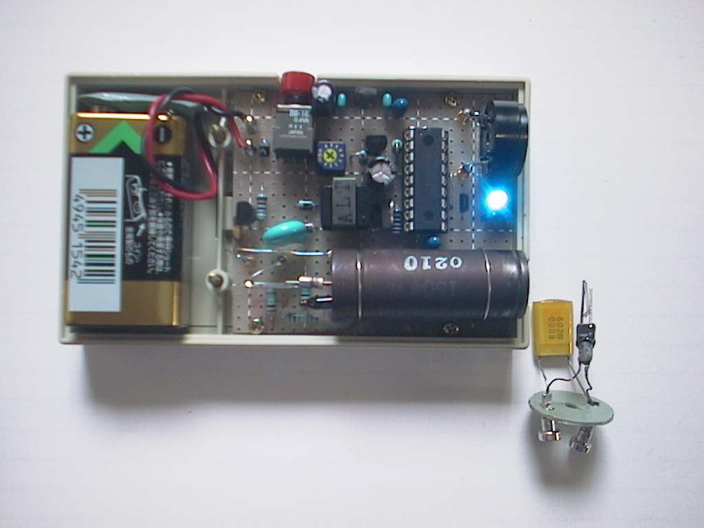 心臓部はPIC16F628で作りました。高圧トランス駆動パルスの生成と圧電サウンダの駆動パルスの