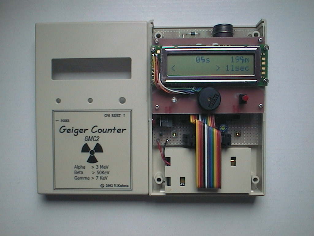 前記ガイガーカウンタにLCDとSWをつけた構成です。SWはCPMの時間リセットに使用。