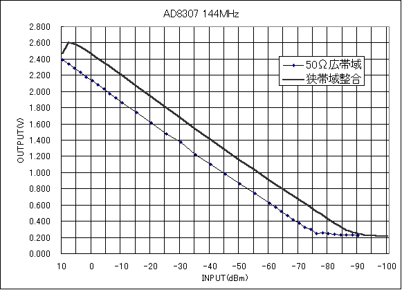 誤差はダイナミックレンジ内でAD8307の規格程度は再現