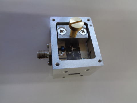 ハーモニックミキサ 構造はDUBUSとか過去発表されているものと同じで何の工夫もない。 ダイオードはHSCH9251 アンチパラレル。 基板はKUHNE製 ケースはアルミ切削で作った。 局発23GHzは導波管入力でセミリジッドケーブルの中心導体で作った プローブで基板に結合。 IF端子はチョークでDC接地 47GHz出力は4φ円筒 バックショートはM4細目ねじ 基板は細心の注意でアルミケースに導電性接着剤で張り付けた。 |