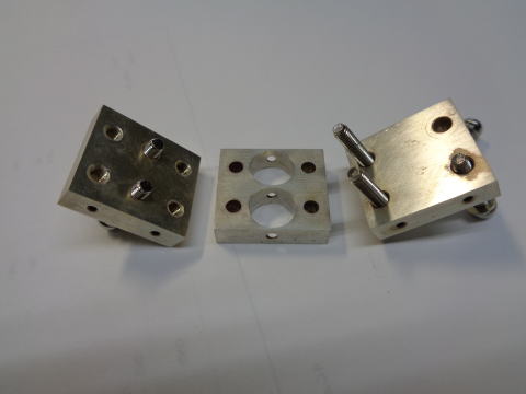 BPF 1回目 ミキサからでた47GHzのためのBPF 1回目に作ったのはJA1EPK氏の記事をまねして空洞サイズ、結合穴 を2種類作ってみた。 使ってみるとうまく同調がとれない。いろいろ試したがいまいち |