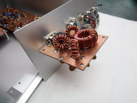 IF(14MHz)の受信側BPFと送信側ATT、送受切替リレー |