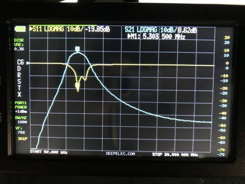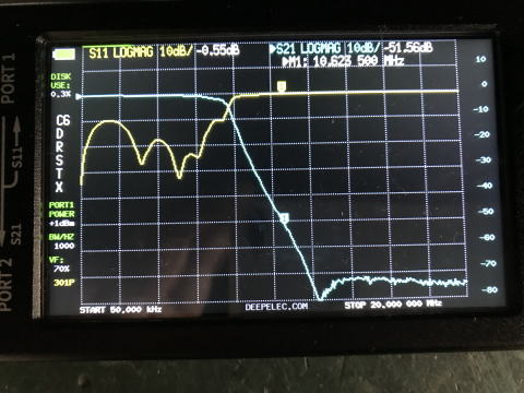不良在庫の部品がある。DBMとかAD9851のDDS、三菱のRD16HHシリーズFETなど。 これらで60mバンド用トランスバータをつくってみた。 このバンドが解放されるまで使えないし、一生解放されないかもしれないがまあいいか。 RD16HHF1は1回はいじってみたかったので今回はリニアアンプとしてどうなのかためしてみた。 DDS、AD9851はクロック6逓倍が可能。 なお回路は大したものではないので記録の写真のみ。 フィルタの特性はnanoVNAを使ってチューニングした。 最終的にはこんな感じにした。 LCD(8桁x1行)の送信周波数の表示もつけてみた。やっていることは過去の製作物と同じ。オフバンドのチェックもあり。 IFは14MHzで5.3MHzへ落とす為の局発は8.9MHz帯とした。 ![]() |