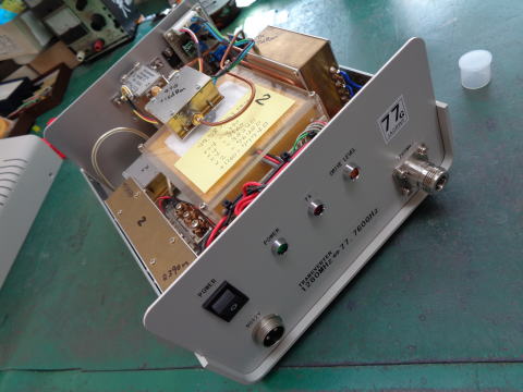 作りかけだった1.2GHz⇔77GHzトランスバータを完成させた。 ごく普通の構成なんで回路図をお見せする程のものではありません。 |