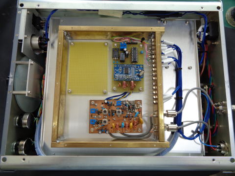 中華DDSとPICで作ったVFO VFOつまみは10KボリュームでA/D変換してデータに変換、それをDDSに送る。 送信時 7.150-7.199MHz 受信時 7.605-7.654MHz を発振。(下側はイメージ混信がひどかった) 出力は2W以上出るアンプも搭載 ポイント! DDSへの書き込みは必要時以外行わない。 書き込みのクロックとかが出力に乗る 極端に言えばVFOを回した時だけデータを送る。 |
