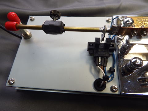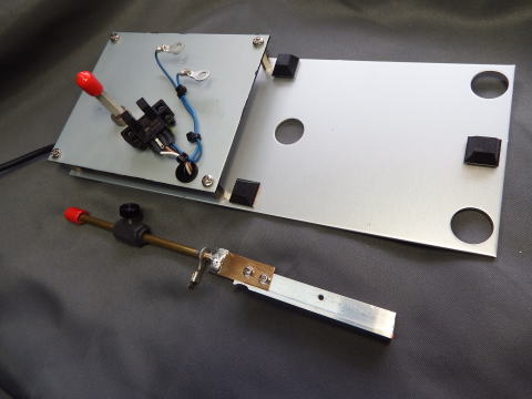バグキーがどんな物か?ご存じの方は多いと思うし、youtubeには沢山の動画が上がって いるので理解も早いと思うが、普通は短点が自動(おもりの振動)で出るキーである。 遥か昔、高校生の時これを初めて触った時は驚きましたよ。 さすがに使おうとは思わなかったがやはりあのメカニズムの衝撃が忘れられない。 そこで”試しに”作ってみた。 ”試し”なので全部一から作っても仕方がない。手持ちのバイブロのシングルキーを改造してみた。 当然元に戻せることは前提で、あの板バネ部分を追加することとした。 1,バイブロのキイーの短点接点ははずす。 2,レバー延長用のLアングルを取り付ける。 延長しないとターミナル部分に板バネが当たるので 3,Lアングルの先に板バネ、棒、おもりを付ける 4,アルミ板にバイブロのキーを置く 5,棒のストッパー、短点センサーには磁石を付け鉄板の上に置く 6,長点信号はバイブロの長点をそのまま使う 7,短点はセンサーからとる。 ポイントは4つ ●板バネは鋼を使いたかったが極少量のために買うのももったいないので ベリリウム銅板(t0.3)を使った。応力限界に問題があるが試す程度には 使える。 金ノコの歯をグラインダーで細く、薄く加工すれば使えるかもしれません。 バネの幅、厚さ、長さがパラメータとなります。 ●短点の接点は通常板バネ製なのだがチャタリングの問題がありそうで光センサを使った。 真空管のカソードキーイングとか大きな負荷の開閉には機械接点でも良いのだろうが 最近のリグにはどうなんだろう。 おもりの振動を使うのにその振動を止める方向の接点は使いずらそうということでこうなった。 不利なのはセンサーに電源が必要なことであるが最近作ったエレキーは5Vを出せるようにしてある。 ●ストッパーとセンサーは磁石で鉄板に張り付けている。 位置調整は手で動かす。 ●おもりの位置を変えてCWのスピードを変える。 結果、ちょっとサイズが大きくなってしまったがそれなりにできた。 おもりの振動で出る短点は見ていて面白い。 |