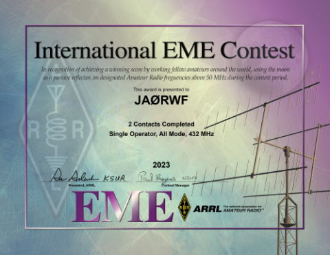 大きなDXコンテストになるとcertificateが自動で発行されるようなのでやってみた。