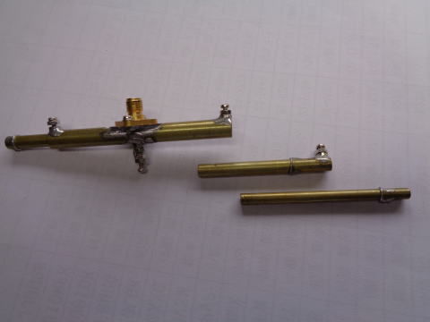 内径5,4,3φのパイプを組み合わせた。 チューニングはバックショートとダイオード付近のM2ねじ |