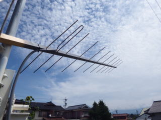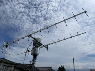 70cm ANTENNA 最初はWA5VJBのCheep Yagiを作ったがSWRが敏感で 使用を躊躇した。 そのため自作ではないがダイヤモンドの15エレを2本使い円偏波とした。 V/H両方前後の位置は同じとして2本のあいだの給電ケーブルに 1/4波長の差を設けた。 2分配器はQマッチとし75Ω同軸ケーブルで作り、VNAで電気長を確認、 分配後給電部までのケーブルは1/4波長ぶんの差があることをVNAで 確認した。 下から AZローター、ELローター、プリアンプ用タッパーの順 |